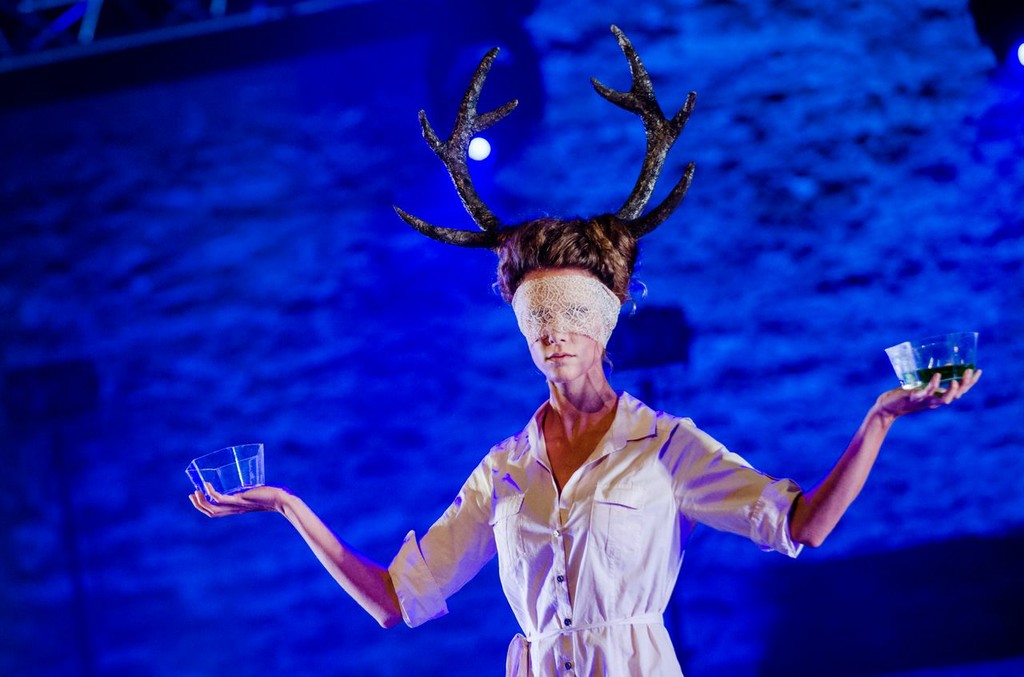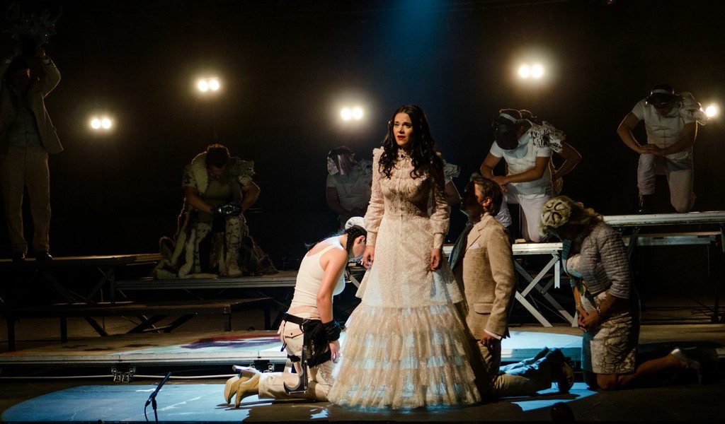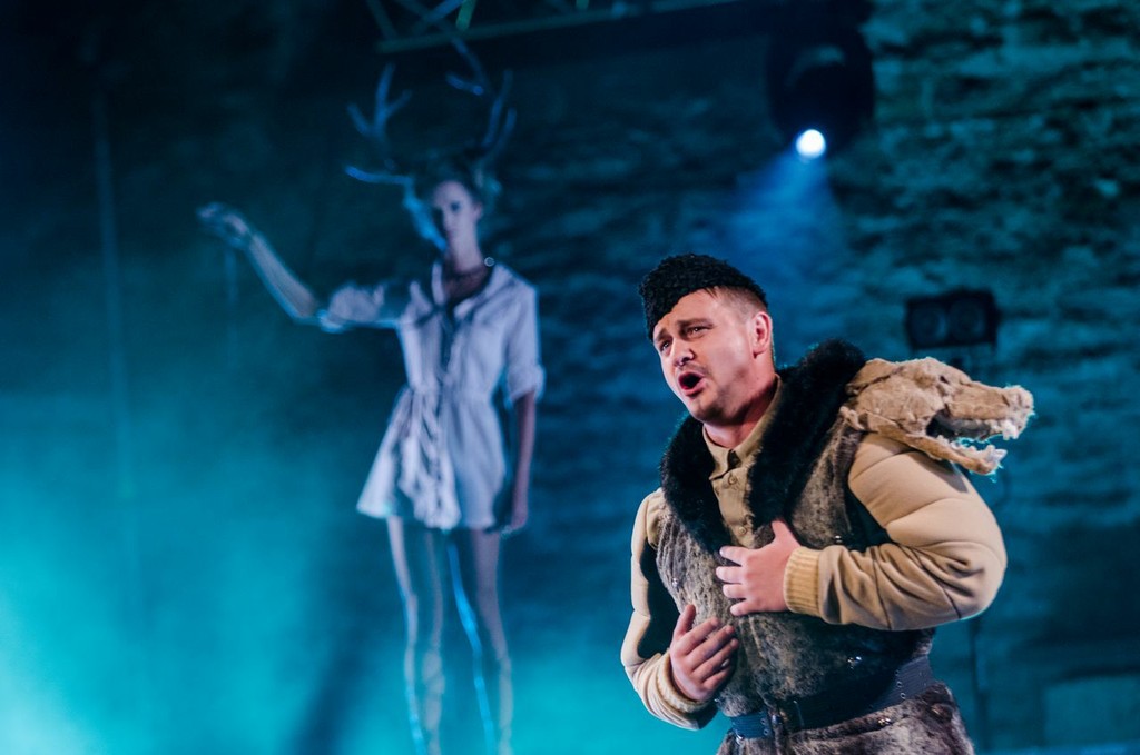 Режиссёр Теэт Каск почти не даёт драме Корсакова–Мея социально-политического звучания: всё действие сосредоточено на противопоставлении мужского и женского начал. Жёсткий мир мужчин-воинов, обряженных в песочно-коричневых тонов камуфляж (художник по костюмам Мадис Нурмс) с волчьими мордами в виде своеобразных эполет (слабая и совсем необязательная в данной интерпретации аллюзия на опричную сущность подельников Грязного), противопоставлен сонму эфемерных девушек-эльфов тотально в белом, в костюмы которых искусно инсталлированы трафареты с оленьими фигурками. Стая волков терроризирует, держит в постоянном страхе, подчинении добрых и грациозных животных – метафора более чем очевидная: грустная одинокая фигурка девушки-оленя появляется на сцене за прозрачным занавесом ещё на звуках увертюры, словно символ бесправного, загнанного сильными мира сего существа.