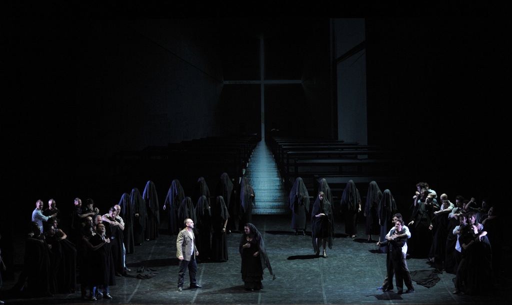 Сценическое решение (режиссер Луиджи Барилоне) как нельзя лучше соответствовало драматургии «Трубадура». Нестерпимо пылает пламя страстей в музыке оперы, им-то и был предоставлен зеленый свет на сцене театра в Бергамо. Молодые, почти никому неизвестные певцы, получившие свои партии благодаря честному прослушиванию (по уверению художественного руководителя Bergamo Musica Festival Франческо Беллотто), а не закулисным играм агентов. Отличный молодой дирижер, у которого, в соответствии с выражением Тосканини, «партитура в голове, а не голова в партитуре». Вот так и получилось, что в первое сентябрьское воскресенье пришедшие в театр получили роскошный подарок: на сцене театра Доницетти царствовала настоящая, большая МУЗЫКА.