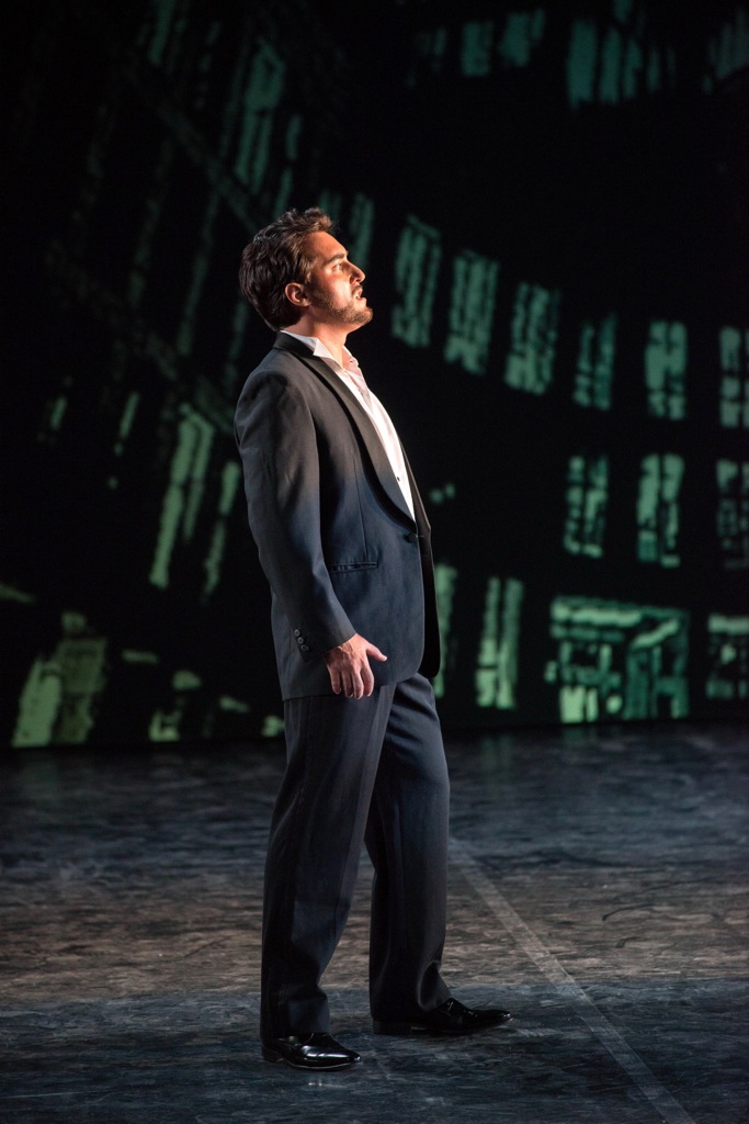 Ну, а сценическая оправа крайне проста: видеопроекция переносит действие оперы в наши дни (не входя в противоречие с либретто Каммарано) и создает яркий контраст между мегаполисом, в котором живут представители правящего класса, граф ди Луна и его сторонники, и нищей периферией, где обитают цыгане. На экране в черно-белах тонах небоскребы, эстакада, подземная парковка, тюрьма. Сторонники графа в черных пиджаках и брюках, цыгане в самом разношерстном и простом платье: майках, штанах, блузках и юбках, Манрико в «сталинском» френче. Наряд Азучены, широкая юбка с блузкой под блейзером и крупным ожерельем на шее может вполне сойти, а вот два длинных платья Леоноры откровенно уродуют массивную фигуру Роберты Поццер и создают ей проблемы в передвижении в сцене. Очень жаль, ЖЕНЩИНЫ ОПЕРЫ, когда вы так хорошо поете, не забывайте о том, что опера – это театр, а женщина должна быть прекрасна во всем, всегда и везде...