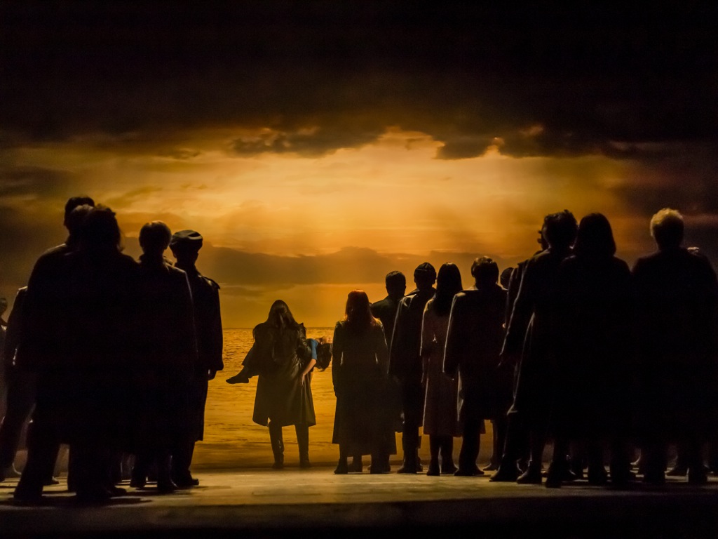 Одноцветный колорит, клубы дыма, словно отголоски морской пены, сумрак ночи, почти постоянно окутывающий сцену, простые, но выразительные костюмы героев – всё в масть, в совокупности создаёт атмосферу угрюмого северного мира, в котором, тем не менее, есть место настоящей любви, есть место подвигу во имя любви. Первое явление Голландца не может оставить равнодушным: ниоткуда, словно по мановению волшебной палочки вдруг из глубины сцены возникает мощный силуэт – это он, горе-герой, неумолимый, словно судьба. Великан Алексей Тихомиров с длинными ниспадающими волосами, в старинном плаще-камзоле и высоких сапогах надвигается на зрительный зал, приковывая к себе всеобщее внимание – настоящий Голландец! Столь же эффектен и финал оперы: открывшийся морской горизонт необыкновенной красоты, куда уходит герой, неся на руках бездыханное тело Сенты, однозначно читается как исход, прощение и торжество любви – просто, ёмко и, несомненно, убедительно.