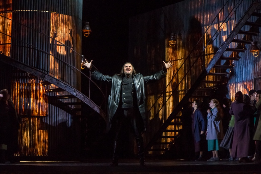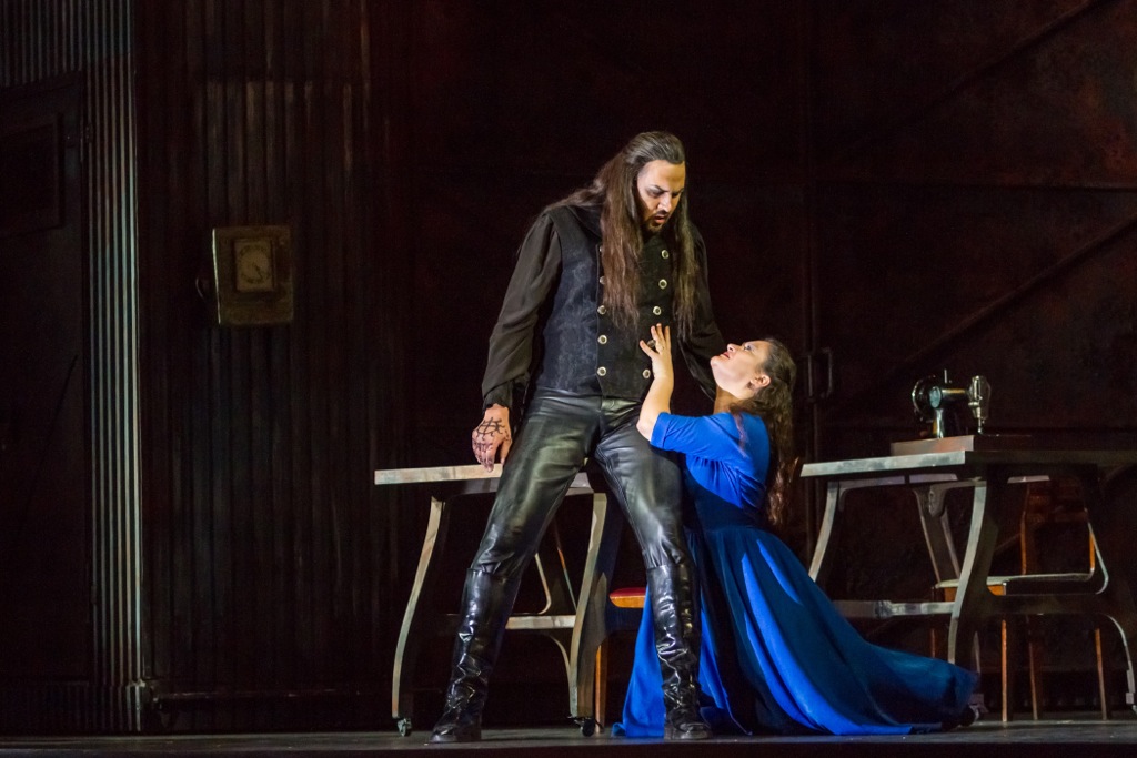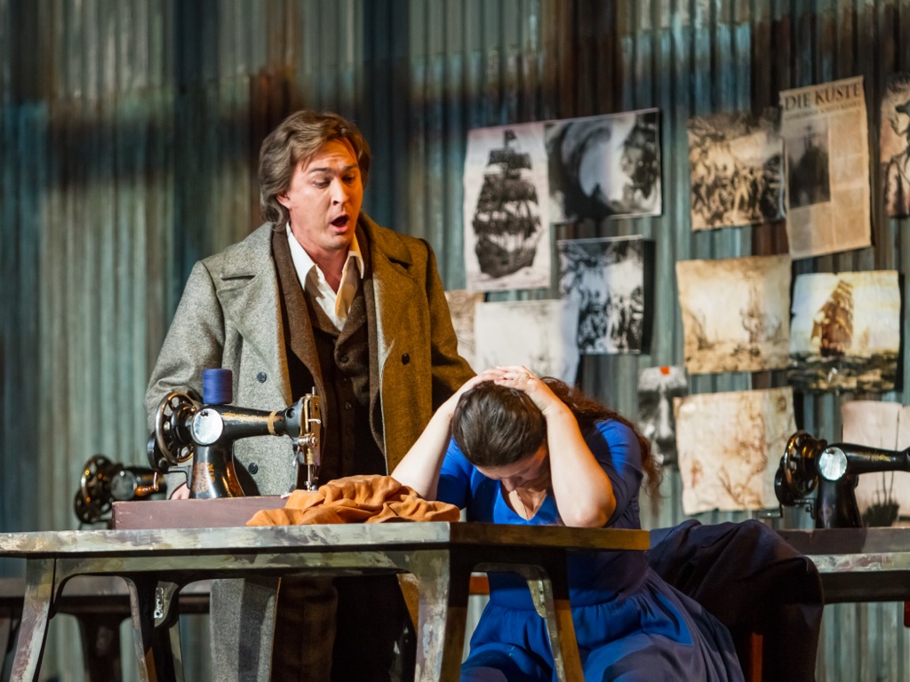 Алексей Тихомиров, напротив, роль проживает стихийно: конечно, и он профессионал, но обаяние какой-то непредсказуемости в его пении и игре чувствуются намного больше. Его Голландец привлекателен не только ростом и сумрачным видом: энергичное пение солиста убеждает не меньше. Высокому басу Тихомирова баритональная партия героя подходит очень хорошо: ранее певец частенько брался за слишком низкотесситурные партии (например, Малюты в «Царской невесте»), и всегда чувствовалось напряжение, что ему это низковато. В Голландце этого нет – есть свободный, ничем не стеснённый вокал, притягательный и впечатляющий. К слову, у всех без исключения солистов хороший немецкий – это при том, что абсолютное большинство из них в немецкой опере выступают впервые.