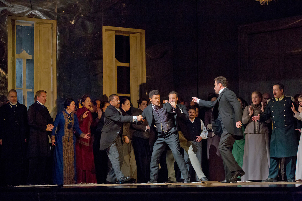 Мужской состав был также профессионален, но есть некоторые комментарии и по нему. Оба польских певца, исполнявшие главные партии, до конца не сумели избавиться от акцента, хотя, быть может, что для сноба-денди Онегина, что для поэта с «геттингенской душой» Ленского это не так уж и плохо – добавляет определенных шарма и пикантности.