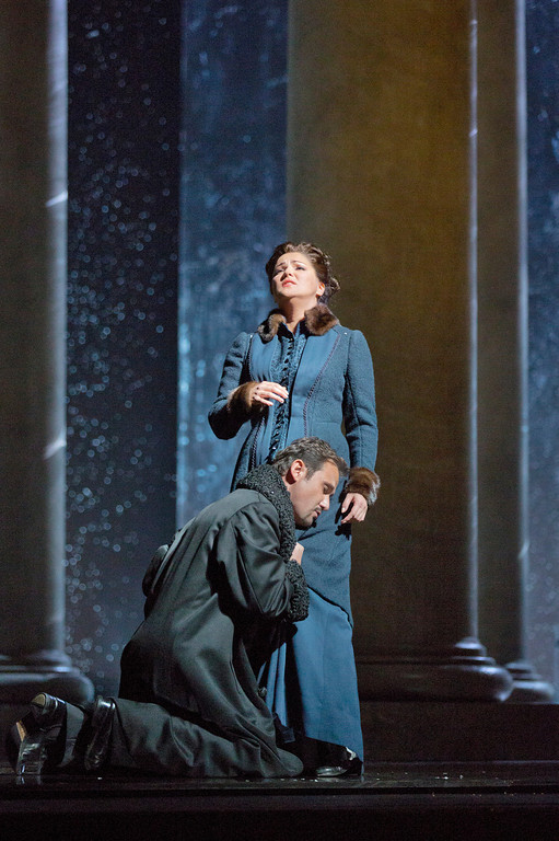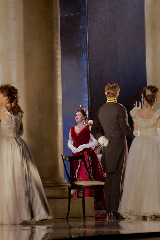 Дебюта Анны Нетребко в партии Татьяны ожидали давно. Её прежняя колоратурная специализация всегда вызывала вопросы, а вот крепкие лирические партии ей в самую пору, особенно сейчас, когда голос певицы стал более полновесным и вполне пригодным для лирико-драматического амплуа. Впервые одну из главнейших женских партий русского репертуара певица спела несколько месяцев назад в Вене, но те выступления слышали лишь посетители Штаатсопер, а метовский дебют стал достоянием самой широкой общественности благодаря трансляции. Ощущения от этой работы певицы противоречивые. С одной стороны, её притязания на подобный репертуар не кажутся завышенными: после Иоланты, Микаэлы или Мими петь Татьяну, в общем-то, вполне естественно, певица не испытывает трудностей ни по тесситуре, ни в драматически напряженных сценах, где нужна не просто плотность, но даже мощь голоса (заключительная картина). С другой, в пении отсутствует какая-то лёгкость, поэтичность, прозрачность (хотя пиано Нетребко, конечно, владеет), которая ещё лет десять назад была, например, в её Наташе Ростовой. Сцена письма спета столь плотным, даже жирным звуком, с таким эмоциональным напором, что создавалось полное впечатление, что певица отработала знаменитый монолог Иоанны из «Орлеанской девы» - не меньше. Сценически артистка Нетребко едва ли подходит сегодня к образу юной Тани Лариной. И дело не в том, что её габариты стали более внушительными (в конце концов, нигде не написано, что Татьяна была тощей как щепа, а оперная сцена знавала вполне успешных исполнительниц этой роли, которые не отличались чрезмерной утончённостью – М. Касрашвили, Е. Прокину или Г. Горчакову). Здесь другое – в пластике, в поступи, словом во всём облике сквозит красивая русская женщина, яркая и соблазнительная, но никак не мечтательная провинциальная дикарка. В последних двух картинах, когда публике является гранд-дама высшего общества, Нетребко абсолютно на своём месте, красный цвет на греминском балу ей необыкновенно идёт. В то же время крайне неудачен костюм ларинского бала: артистка сильно смахивает на кустодиевскую купчиху за чаепитием (художник по костюмам – Хлоэ Оболенски).