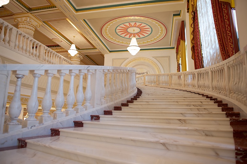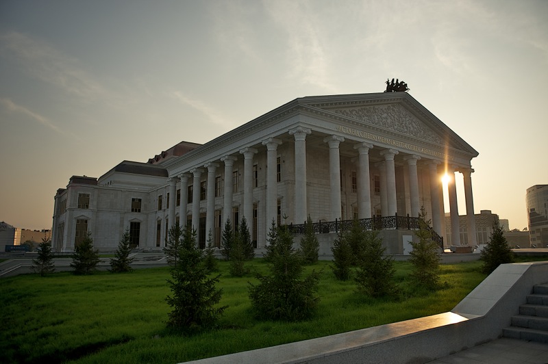 Но, конечно, новой столице нужен был новый, современный театр, отвечавший бы столичному статусу и помпезному размаху градостроительных амбиций Астаны. И такой театр построили: в самом центре новой части города, среди проспектов и бульваров, украшенных многочисленными образцами современной архитектуры. Астана, конечно, производит впечатление многообразием и смелостью архитектурных решений, это город, в котором интересно находиться – любопытство ведёт тебя от одного городского ансамбля к другому, и ты не перестаёшь удивляться тому, как за считанные годы в чистом поле вырос этот чудо-город. Понятно, что весь Казахстан строил новую столицу, но в конце концов и Петербург когда-то строила вся Россия – такие масштабные проекты не даются легко и просто, но молодому казахстанскому государству таковой был просто необходим – для самоутверждения, для демонстрации своих возможностей, для внутреннего геополитического равновесия страны, наконец.