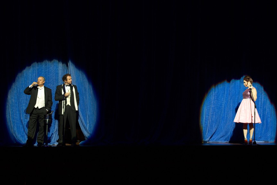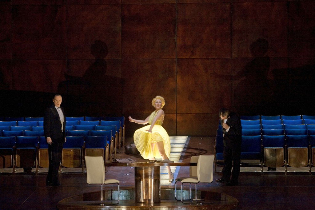 Идея потребовать от зрелой оперной певицы Рикарды Мербет перевоплощаться сначала в Мэрилин Монро, потом в Фэй Рэй, затем ещё в какую-то голливудскую звезду тридцатых годов и при этом несколько раз за спектакль раздеваться и переодеваться на авансцене, заранее была обречена не недоумённую реакцию публики и смешки в зале. Всё-таки каждый должен заниматься своей профессией. Известный румынский оперный режиссёр Андрей Щербан тоже занимается на сцене смешением жанров индустрии зрелищ, но когда ему требуются гимнасты, он приглашает гимнастов, а не пытается научить хор стоять на голове. Если Варликовский будет учитывать специализацию артистов и с ней считаться, замысел не будет оставаться замыслом, а сможет обрести адекватное воплощение. Что касается вокальной стороны партии, то Рикарда Мербет была великолепна.