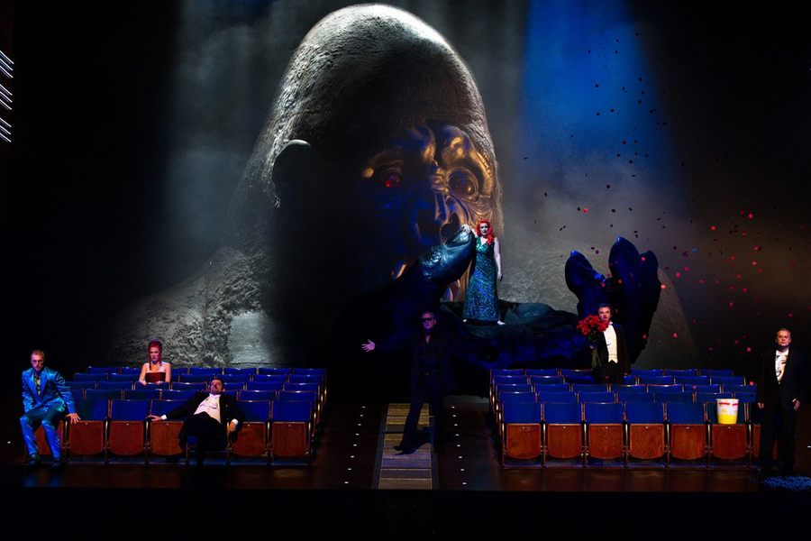 Режиссёрским решением Кшиштофа Варликовского стало смешение на сцене театрального и киножанров. Отношение к оперной увертюре – это вообще лакмусова бумажка отношения режиссёра к музыке. Что он сделает? Даст увертюре отзвучать при закрытом занавесе, как хотели композиторы, доверяя публике, и было принято в оперной традиции испокон веков? Использует для миманса в русле своей дальнейшей режиссёрской концепции? Или устроит на сцене бессмысленную «движуху» с посторонними шумами.