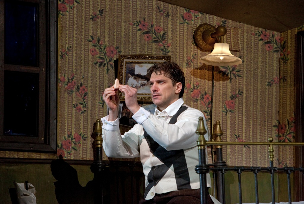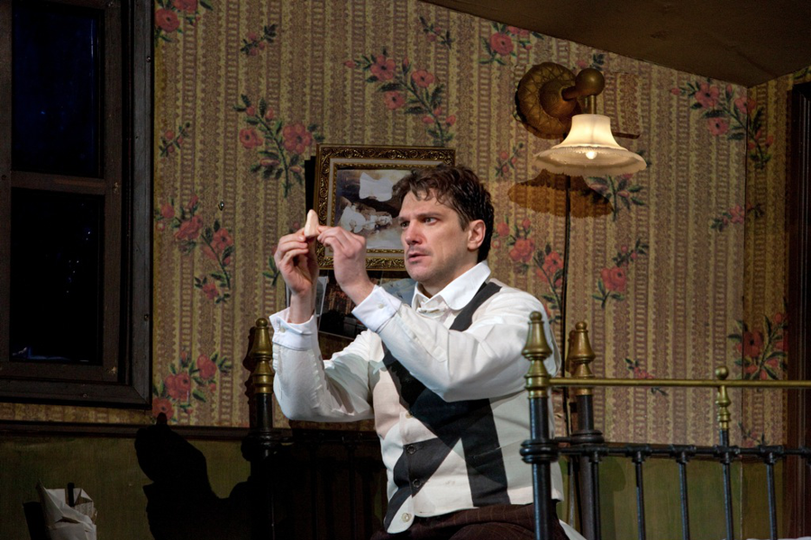 Вокальные способности певцов в операх, подобных “Носу”, оценить сложно. Ни выходными ариями, ни эффектными верхними “до” аплодисменты в середине действия не сорвешь! Можно говорить о другом – об уровне музыкального речитатива и качестве высокой тесситуры. Соответственно, “брать” зрителей можно актерской игрой и интонационной выразительностью. И здесь я бы хотел похвалить всех участников спектакля. Партию майора Ковалева и на премьере 2010 года, и в этом году исполнил бразильский баритон Пауло Сзот. Среди его русских опер – Онегин в Австралийской опере и Филипп Филиппович в опере А.Раскатова “Собачье сердце” в Ла Скала. Несколько лет назад Сзот был удостоен премии “Тони” за роль Эмиля де Бека в мюзикле “Юг Тихого океана”. Австралийский баритон Александр Льюис хорошо справился с партией Носа. Отмечу солиста Мариинского театра Андрея Попова в партии Квартального надзирателя (он исполнял эту партию – очень хочется написать “играл эту роль” - еще в постановке Юрия Александрова 2004 года в Мариинке). Мариинский театр достойно представляли Владимир Огновенко (Иван Яковлевич), Сергей Скороходов (Иван), Геннадий Беззубенков (Доктор). Хорошее впечатление оставил дебют в МЕТ молодой китайской певицы Йинг Фонг в крошечной партии дочери Пелагеи Подточиной. После окончания Шанхайской консерватории и Джульярдской школы она учится в Школе молодых артистов при Метрополитен-опере. Ее уже называют самой яркой звездой своего поколения. Йинг Фонг - запомним это имя!