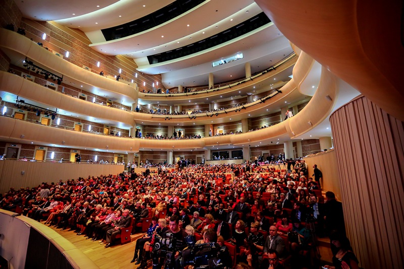 Оригинальным подарком прозвучала румба из «Повести о настоящем человеке» Сергея Прокофьева – оперы, которую Антон Лубченко к юбилею Победы в 2015 году намеревается полностью без купюр поставить в Приморском театре. Эту музыку сопровождал забавный видеоряд из перелицованных советских агитплакатов, на этот раз призывающих граждан твёрдо поступью шествовать во вновь открывшийся храм искусств. Венчал вечер глинкинский хор «Славься» — сильно купированный и не прозвучавший убедительно – хору театра вдруг явно не хватило мощи и слаженности исполнении, поэтому, пожалуй, даже хорошо, что знаменитую в бетховенском стиле фреску не стали давать в полном объёме.