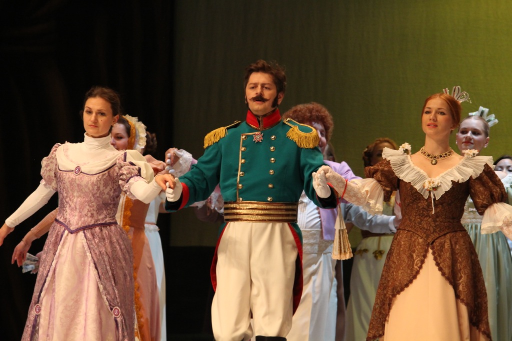 Труппа самого молодого и самого восточного оперного театра России в целом укомплектована – сюда приглашены музыканты со всей страны, при этом около трети – это местные приморские кадры. Этот факт сделал возможным начать деятельность нового оперного дома сразу с премьеры – была дана самая популярная русская опера классического наследия – «Евгений Онегин» Чайковского. Технические недоделки без которых в России, конечно, не могли обойтись, не позволили дать полноценную премьеру – её создатели назвали вариант полуконцертным, хотя всё было сыграно в костюмах и в декорации (правда, фактически, одной на весь спектакль) – и это при том, что театр оснащён по заявлению его руководства самыми современными техническими средствами. О режиссуре Алексея Степанюка в этой связи мало, что можно сказать – она экономна, лапидарна, весьма прямолинейна. Впрочем, возможно, это не так уж и плохо для первого оперного спектакля в Приморье – экстравагантная режиссура и какая-то слишком заумная концепция были бы здесь наверно просто не к месту. Единственная декорация, созданная художником Вячеславом Окуневым, передаёт приморцам «привет» из Петербурга: все картины «Онегина» идут на фоне Петропавловской крепости, нарисованной на заднике – и варят варенье, и танцуют полонез, и объясняются в чувствах, и стреляются на пистолетах... В этой связи постоянно вспоминалась другая опера Чайковского, для которой такое решение, пожалуй, было бы куда более гармоничным. Костюмы призваны передавать моду пушкинской поры, удачно поставлены танцы хореографом Айдаром Ахметовым.