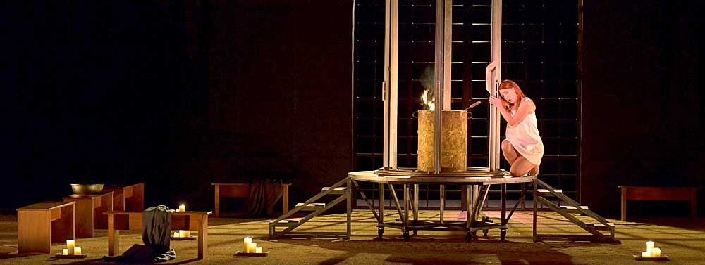 Любопытно отметить едкое замечание рецензента американской «Нью-Йорк Таймс», охарактеризовавшего как «дешёвый трюк» режиссерское решение в грозовой кульминации 3-го акта, когда священный огонь в алтаре вновь возгорается не благодаря божественной молнии, а от рук одной из девственниц, «тайно бросившей спичку в урну»!? От себя могу добавить, что такому откровенному постмодернистскому «снижению» смысла, придающему происходящему какой-то ёрнический оттенок, трудно найти здравое объяснение.