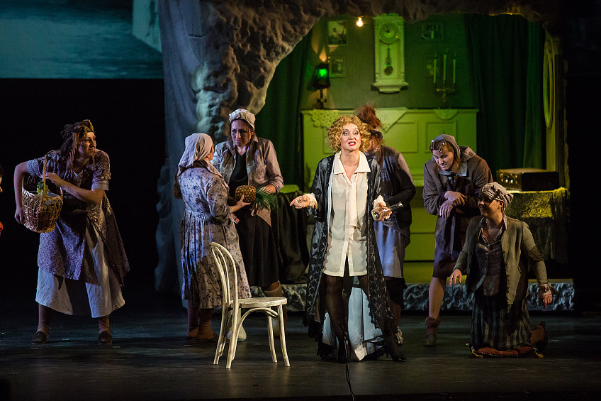 И, наконец, Графиня. Омолодить ее, сделав женщиной легкого поведения, – большого ума не надо, все это не оригинально и пахнет нафталином. Хотя надо признать, что поставлена сцена в советской коммунальной квартире (4 картина) изобретательно и сыграла ее (именно сыграла) Александра Саульская-Шулятьева отменно и интонационно точно. О вокальных красотах в этой партии, разумеется, говорить не приходится…