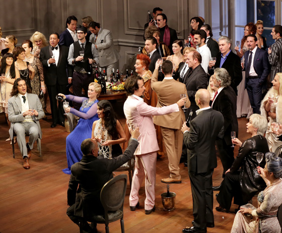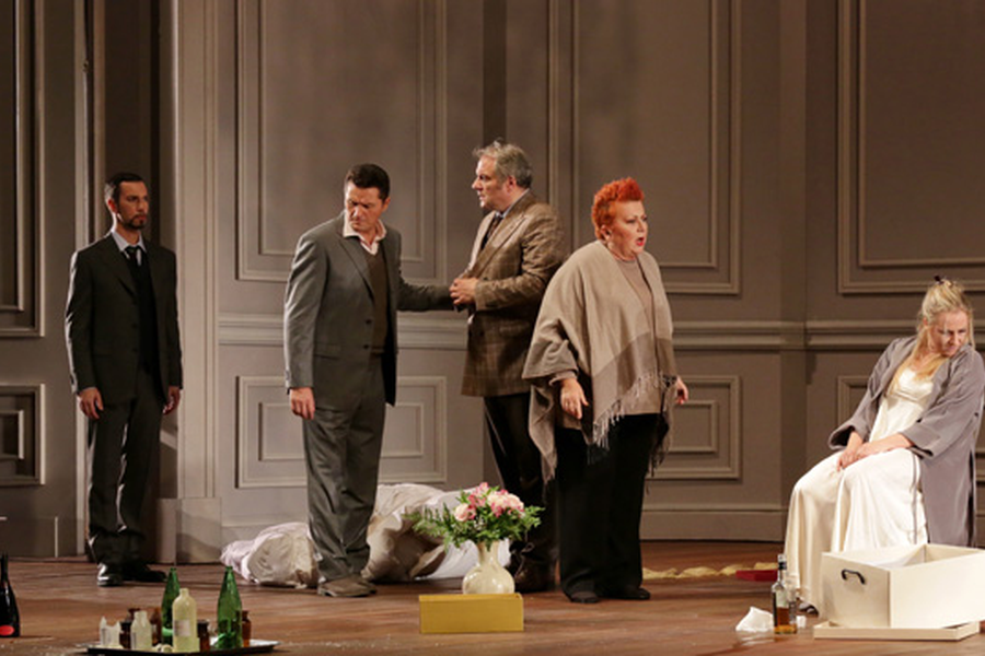 Сценография того же Чернякова явила вещи самые обычные, сотни раз виденные и могущие быть использованными в массе других опер. На сцене были воздвигнуты довольно безличные интерьеры, отсылающие к эпохе Второй империи, в то время как костюмы Елены Зайцевой напоминали о современности. К мужчинам, одетым в брюки и пиджаки, придраться было трудно, а вот женщин Зайцева попросту изуродовала. Или посмеялась над ними с подсказки режиссера?