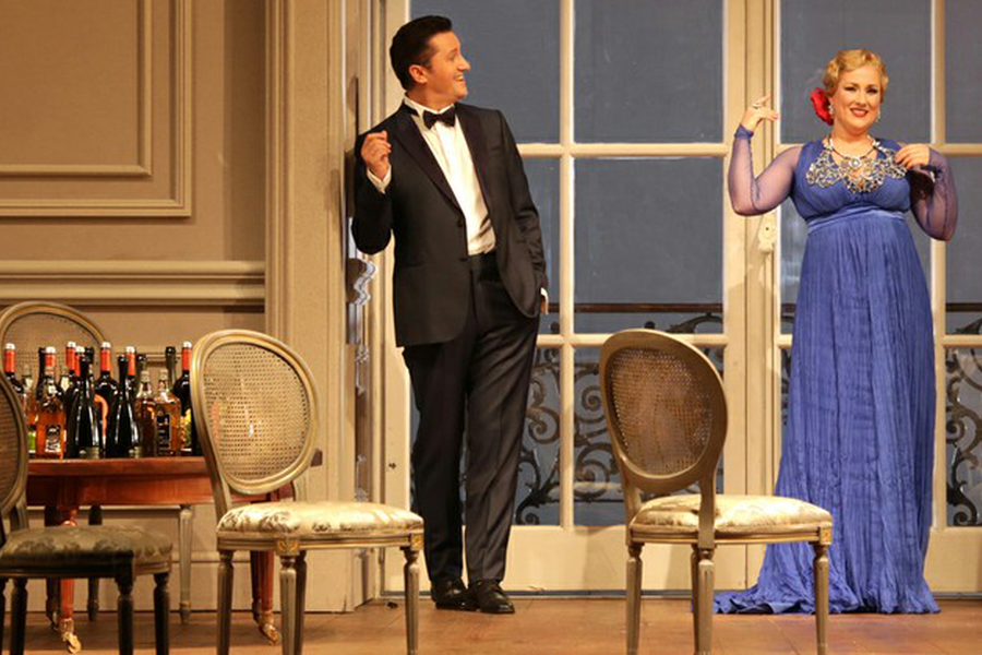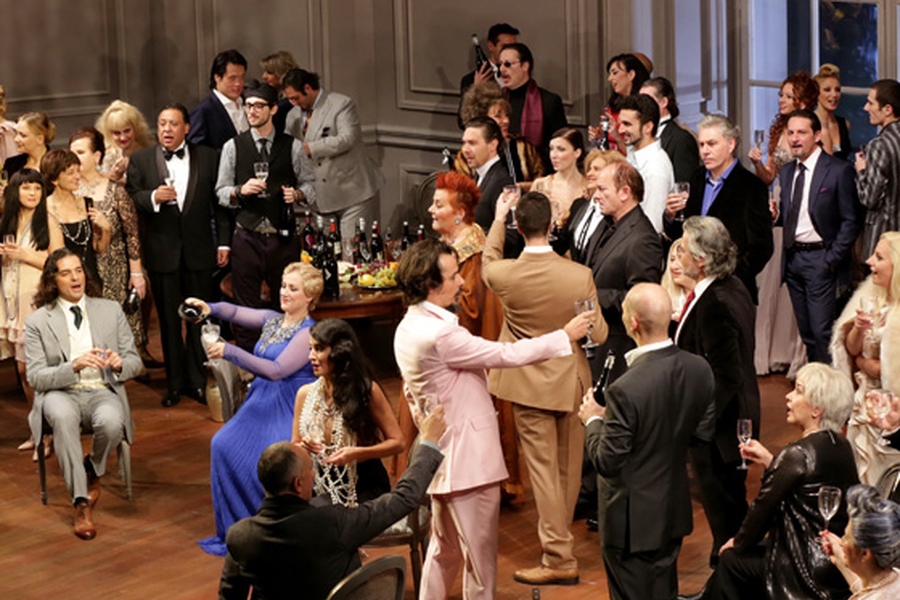 В первом действии дом Виолетты подозрительно напоминал бордель, и не только из-за царящего на сцене сумбура, но и по причине постоянного присутствия Аннины, выряженной в подобие балахона и размалеванной самым устрашающим образом, с короткой стрижкой рыже-морковного цвета (бедная Мара Дзампьери, некогда знаменитое драматическое сопрано, партнерша Паваротти по давнишнему «Балу-маскараду»!). Кто следит за печальными реалиями современной итальянской жизни, уж точно усмотрел сходство со знаменитой телевизионной мошенницей Ванной Марки.