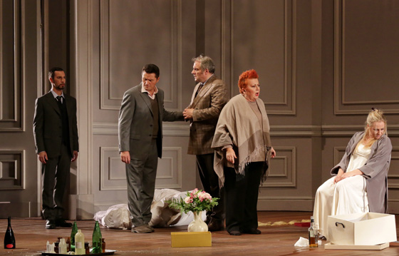 Желько Лучич, которого автор видела и слышала несколько лет назад в «Тоске» Люка Бонди (копродукция «Мет», Мюнхенской оперы и «Ла Скала»), подтвердил некогда сложившееся впечатление. Крайне странным представляется утверждение некоторых критиков, что Лучич один из лучших вердиевских баритонов на современной сцене. У Лучича полностью отсутствует какое-бы то ни было благородство, то, что по-итальянски обозначается словом «classe». Попросту говоря, он невыносимо груб. Таков и его Жермон, без единого намека на холодное достоинство и элегантность, которых этот персонаж у Верди не лишен. Под стать образу и пение сербского баритона, обладающего недурным тембром, но не могущего поставить себе в заслугу ни мягкости звукоизвлечения, ни верности акцентов.