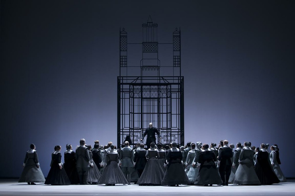 Сценография Пелли избежала худшего. По крайней мере, она элегантна и корректна. В ней нет нелепостей и провокационности, но, вместе с тем, и особой изобретательности. В основном мизансцены были совсем незатейливы, зато певцам было удобно петь. Вся режиссёрская изобретательность сфокусировалась преимущественно на хоровых мизансценах.