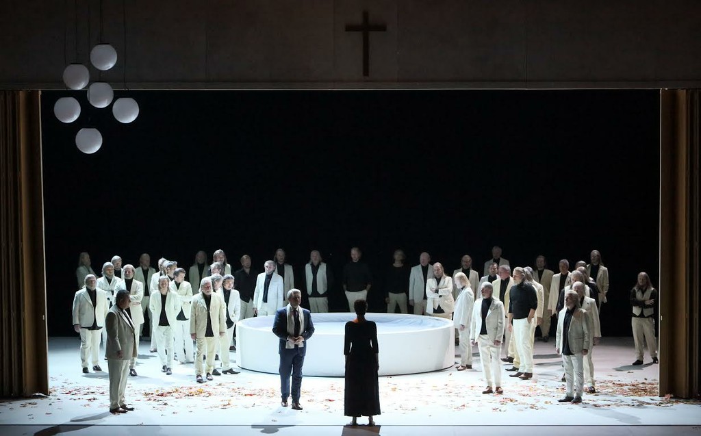 Катастрофичность, пронизывающая партитуру, в спектакле Баварской оперы оказывается доминантой сценического решения. Мир спектакля заключен в себе: в нем нет внешних высших сил, но есть внутренние чуждые; и сила судьбы здесь существует как объективная данность – несмотря на обращение к Господу, монахов и молитвы, Кушей не ставит спектакль о божественном. Смирения, прощения и раскаяния в этом прочтении оперы нет: история в трактовке Кушея и Фиша зарождается во тьме и завершается тьмой.