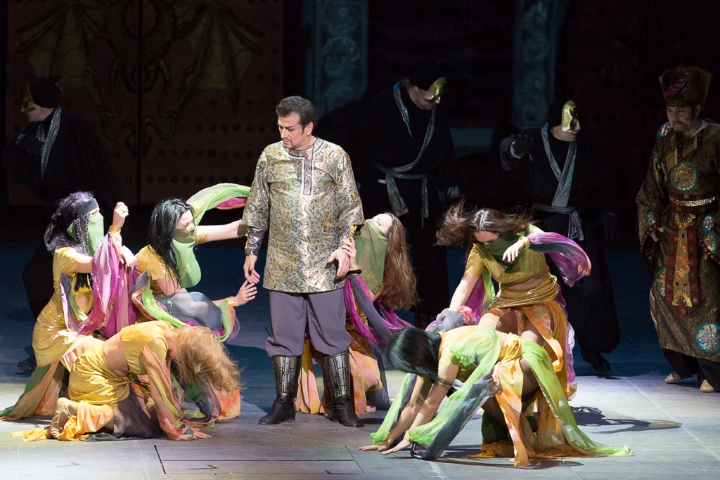 Но и окружение Принца не подкачало. Екатерина Головлёва вела заглавную партию уверенно и с чувством, ее интонации были выверенными. Правда, в сцене смерти Лю певица оказалась на втором плане, причем не только в драматургическом плане, что естественно, но и физически – в глубине сцены. Это вокально-акустически оказалось не очень выигрышным, ей приходилось форсировать звук, что никогда не идет на пользу голосу. Анастасии Москвиной партия Лю впору. Обладательница приятного голоса, сочетающего в себе лирический «привкус» с сочным объемом, эта певица умеет добиваться впечатления разнообразием нюансировки. Для этой партии существенно.