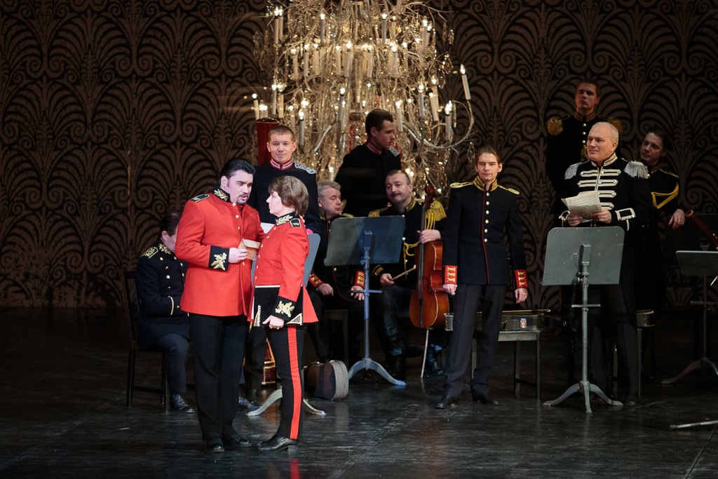 Но «Бал-маскарад» обладает ярчайшими музыкальными жемчужинами, которые могут в значительной степени возместить сценические потери… если их интерпретация здесь и сейчас окажется на высоком уровне! К сожалению, и этого не произошло. Нельзя сказать, конечно, что музыкальный уровень данного спектакля был низким – нет, он был просто заурядным. Я не услышал настоящей вердиевской красоты и гибкости в голосе тенора Федора Атаскевича в партии Густава («шведский» вариант либретто), стильности и стабильного звукоизвлечения у Марии Литке (Амелия). Наталья Миронова пела Оскара достаточно технично, но иногда слишком уж легкомысленно повизгивала в колоратурах, а в звукоизвлечении высоко мною ценимой Ларисы Костюк (Ульрика) можно было обнаружить признаки деградации и «качки». Один Дмитрий Даров (Ренато), наиболее достойно проявивший себя, не в состоянии был переломить ситуацию.