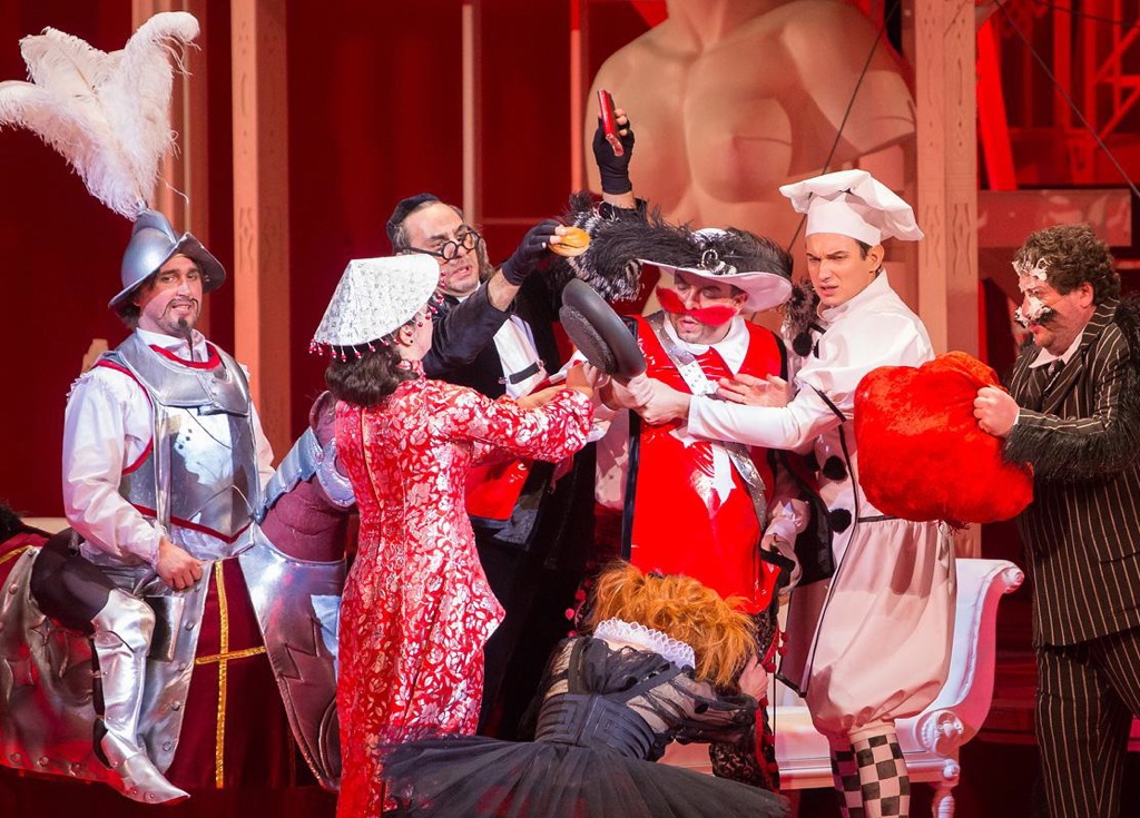 На сцене пред нами непрерывная чехарда броских артистических гэгов, танцевальных и иных чуть ли не цирковых движений. Сцена постоянно переполнена не предусмотренными либретто вымышленными персонажами. Ансамбли (дуэты, терцеты), в которых у Россини герои общаются друг с другом индивидуально, превращены в массовые балаганные шоу вплоть до битья сковородками по голове. Знаменательно, что в таком виде вся эта умора не так уж и смешна, как можно было бы ожидать, ибо чересчур обременена деталями и подробностями, за которыми трудно уследить.