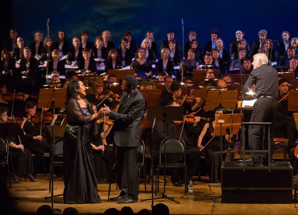 Армянский тенор недавно довольно успешно выступил в мариинском «Трубадуре», поэтому послушать его было интересно. Голос певца по своей природе обладает определенными достоинствами, однако несколько горловая манера и недостаток полетности снижают впечатление. Кроме того чувствовалась небрежность в концовке отдельных фраз. Индра Томас тоже могла бы понравиться больше, если бы не злоупотребление портаменто, придававшего ее голосу некоторую неустойчивость, а может быть даже неуместную импровизационность джазового привкуса. Правда, недостатки эти проявлялись не всегда, а под занавес и вовсе почти улетучились – Томас и Айвазян распелись и заключительный дуэт провели на высоком накале и с большим чувством.