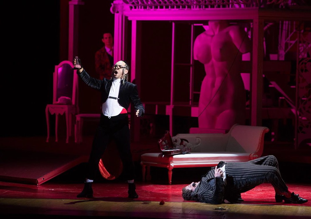 Что можно сказать о музыкальной стороне спектакля? Она в значительной степени подверглась деструктивному воздействию режиссерской концепции – это, как уже сказано выше, было неизбежно. Особенно это было заметно в нервически дерганом фортепианном сопровождении речитативов.