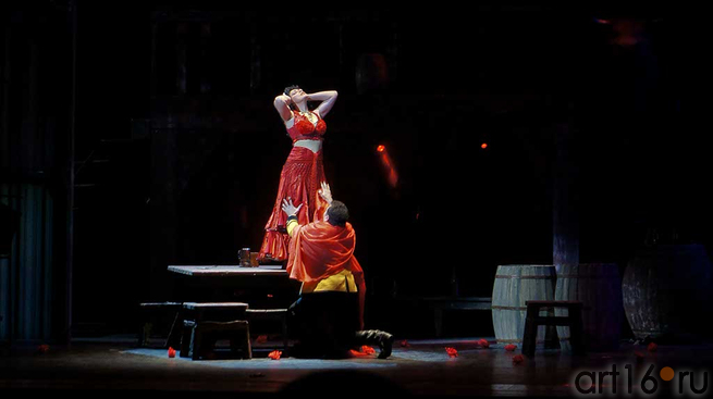 В такой обстановке, как ни парадоксально, оказались и свои плюсы. Возросла роль музыкального начала и пения, которое само по себе может стать самоценным в любом оперном спектакле, определить его успех. И в этот вечер такой успех обеспечила главная героиня – Елена Максимова из Музыкального театра имени Станиславского и Немировича-Данченко. Ей удавалось практически все, включая проявленное артисткой завидное пластическое и танцевальное мастерство. Вся партия была проведена впечатляюще. Максимова убеждала не чрезмерным темпераментом и уловками роковой женщины, а, прежде всего, гармонией музыкального и драматического образов. Голос певицы, красиво наполненный, глубокий и четкий в середине, хорошо озвучивал и низы. Раньше мне казалось, что у Максимовой, несмотря на ее достаточно высокое меццо, есть определенные проблемы на краях диапазона, особенно в верхнем регистре. Но нынче, за исключением нескольких моментов, где на верхах в голосе проскальзывала простоватая резкость, я этого не заметил.