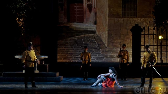 Эскамильо – Владимир Мороз был на своем месте, эффектно озвучив эту, в общем-то, концертного плана роль и без проблем дотянув нижний си-бемоль в куплетах. Бóльших художественных возможностей эта партия и не дает. Квартет главных персонажей профессионально поддержали контрабандисты со своими боевыми подругами-цыганками. Эти партии исполнили казанские солисты Юрий Ившин, Юрий Петров, Гульнора Гатина и Влада Боровко.