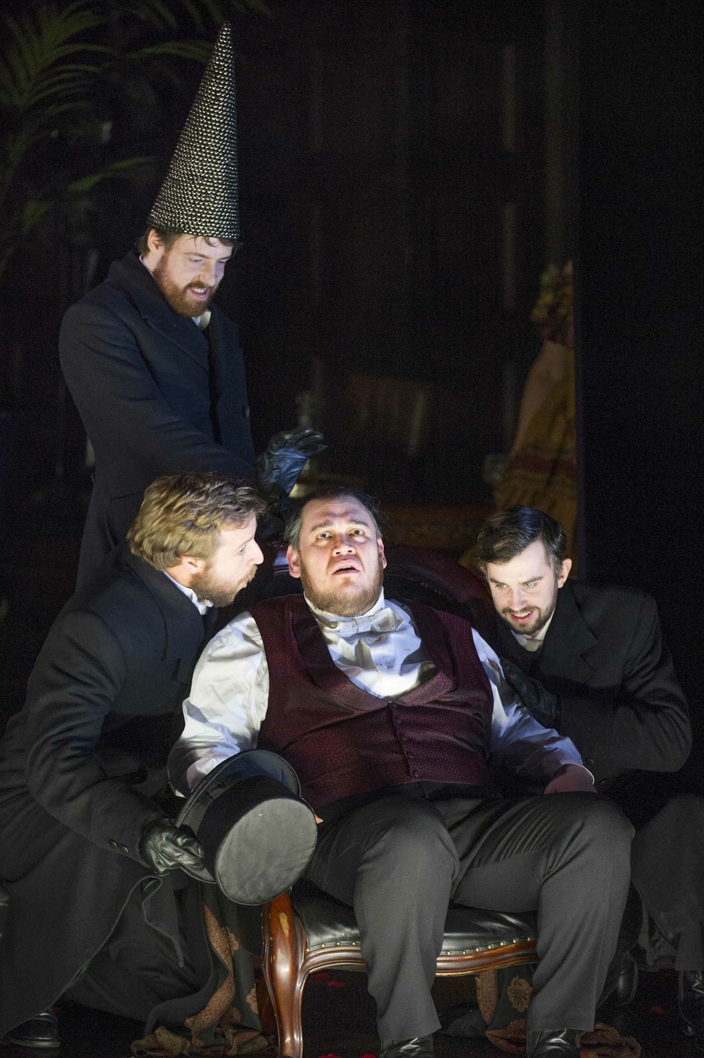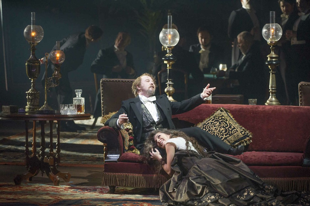 Однако, такой «Риголетто» подходит Лондону, вписывается в его реалии, если уж не современные, то, однозначно, прошлых веков. Хотя, подобные клубы джентльменов (теперь и дам-с) с наступлением сумерек приветливо зажигают свои факелы в элегантном лондонском районе Мэйфэя каждый вечер и сегодня. Поверьте мне – абсолютно с тем же интерьером. А лондонская публика, приученная Английской Национальной Оперой к непредсказуемым интерпретациям и новаторству, заполнившая в этот вечер театр до отказа, однозначно настроилась на неожиданное драматургическое приключение.