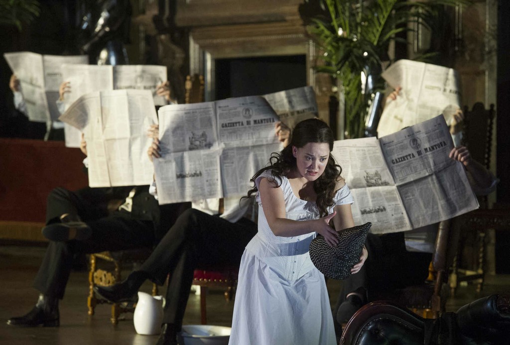 Тенор Барри Бэнкс, также весьма востребованный Английской Национальной оперой, в роли Герцога парил на всех верхних нотах, и его песенка про женскую неверность звучала игриво и зазывающе.