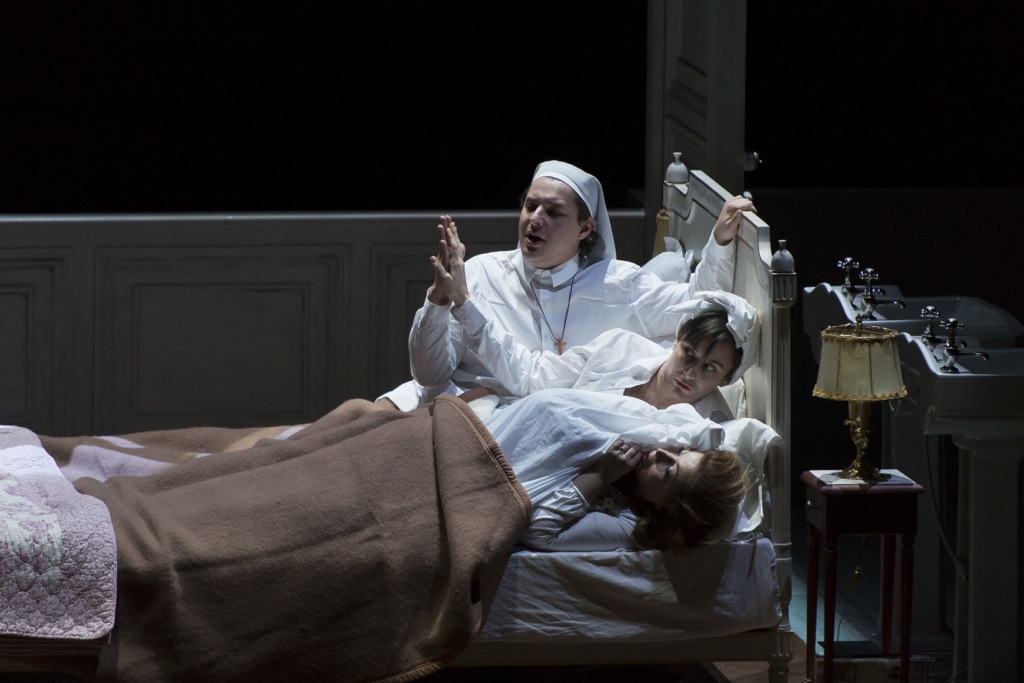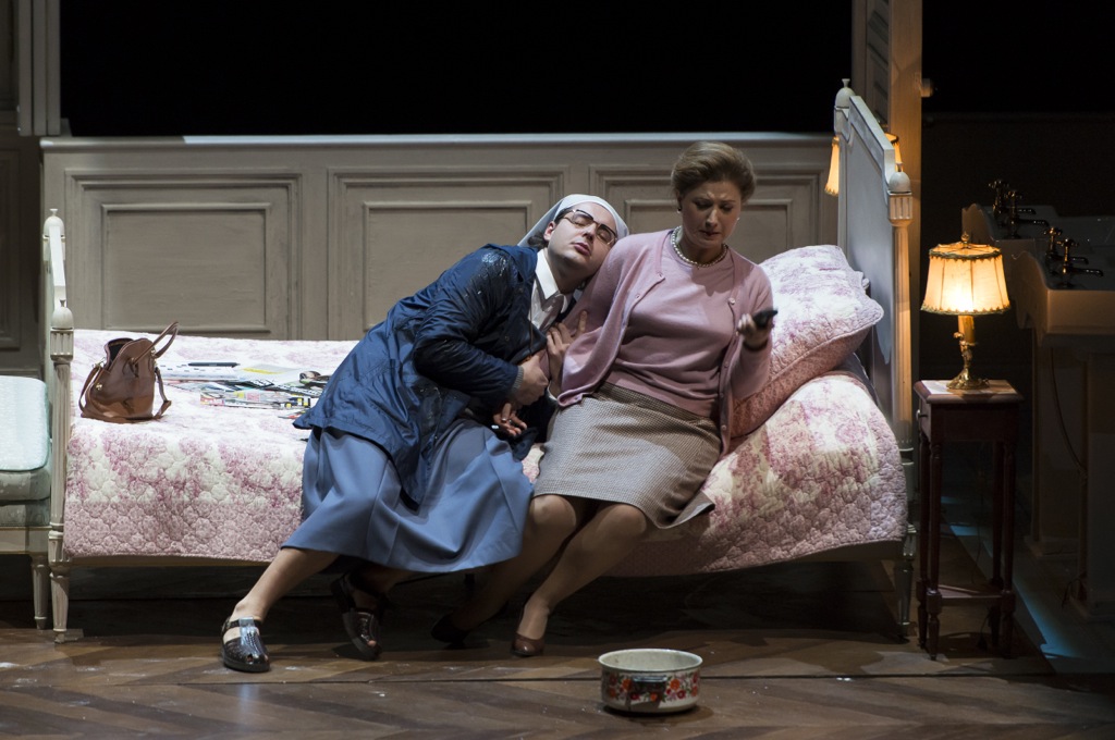 Бас Патрик Боллейр великолепно справился с трудной арией графского Гувернёра. Партию Рэмбо, верного помощника графа во всех его сумасбродствах, исполнил Жан-Себастьян Бу – тот самый, что в Москве пел Пеллеаса, а здесь, в Лионе, в прошлом году наделал шуму исполнением главной партии в первой постановке оперы Тьерри Эскеша «Клод», которую режиссёр Оливье Пи нашпиговал откровенными гомоэротическими сценами. В «Графе Ори» Бу произвёл неоднозначное впечатление. Его невероятная харизма и редкий комический дар были несколько омрачены тем, что для пародийной «героической» арии из второго акта, где доблестный рыцарь Рэмбо хвастается своими опустошительными завоеваниями в винном погребе, у певца несколько не хватило лёгкости и блеска. Но в целом и образ Рэмбо удался на славу – такого прохиндея ещё где поискать! А ведь в прошлом году, в «Клоде», этот певец, несмотря на всю эротику, производил впечатление абсолютной актёрской беспомощности. Но попав в в руки настоящего мастера, заиграл всеми сценическими красками.
