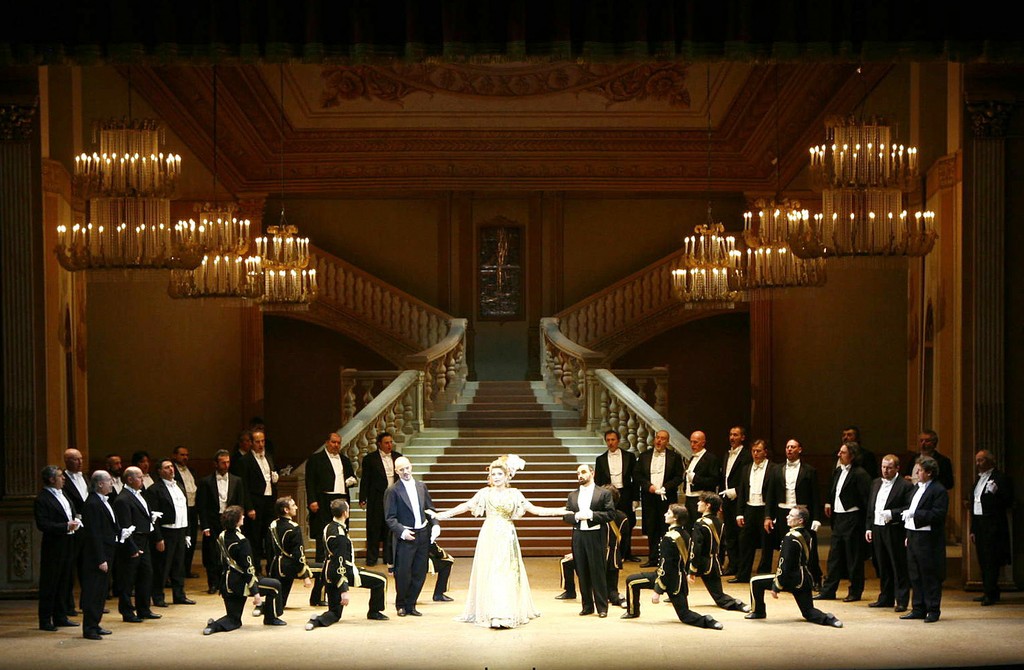 А между тем то, что предстало на сцене веронского театра Филармонико, было не вполне плохо. Почему автор высказывается с такой осторожностью, ведь спектакль прошел «на ура», публика горячо аплодировала певцам и артистам кордебалета, дирижеру и оркестру?? Да потому, что «Веселая вдова» (постановка Джино Ланди 2005 года) вновь поставила непреодолимую проблему, по-итальянски именуемую la classe non è acqua. Что бы это значило, спросит русскоязычный читатель? Выражение в буквальном переводе означает «класс - это не вода», что означает «показать высокий класс – это вам не воды выпить». А что такое показать высокий класс? Не все можно выразить в словах, но кое-что можно: умение одинаково хорошо петь, играть и танцевать, умение носить фрак или вечернее платье, умение кокетливо наклонять головку, украшенную перьями (для женщин...) и играть тросточкой (для мужчин...).