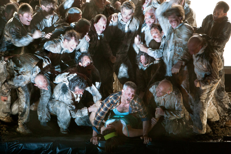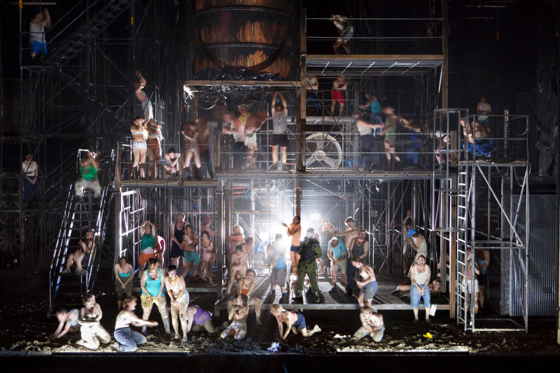 Есть у этой постановки и «штатный» драматург (Беттина Ауэр), однако подобная мода на «свадебного генерала-драматурга», перекочевавшая из немецких оперных театров, в постановочных раскладах всегда вызывала и продолжает вызывать у меня ироничную улыбку. Не знаю, пришел ли режиссер к воплощенной в итоге концепции сам или совместно с драматургом, только эффект от подобного погружения партитуры Шостаковича в полностью придуманное измерение фантастического голливудского блокбастера-катастрофы, оказывается на редкость результативным и убедительным.