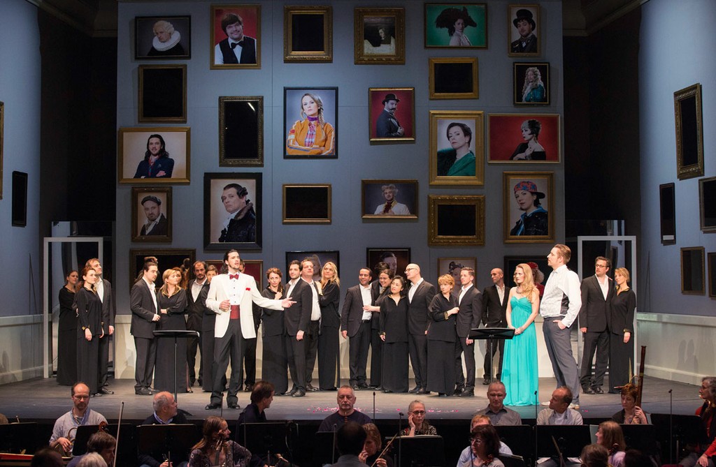 Внимание не только музыкантов, но и широкого круга венской публики сейчас привлечено к его проекту – постановке моцартовской трилогии – «Le nozze di Figaro», «Don Giovanni» и «Cosi fan tutte». Последнее название, по счастью, попало в орбиту моих венских впечатлений в начале марта. Это было полуконцертное исполнение в венском театре Ан дер Вин с минимумом физического театрального действия и максимумом смыслового наполнения музыкального текста. Весь театральный антураж – фон из цветных фотопортретов современных людей, в том числе и исполнителей спектакля, зеркала в рамах по бокам павильона, столик с шахматной доской, на которой Дон Альфонсо во время увертюры расставляет фигуры, несколько пультов для нот, несколько стульев.