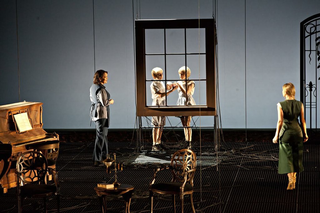 Однако режиссёр-постановщик лионского спектакля Валентина Карраско решила – благо, современные технологии позволяют – пойти совершенно иным путём и попытаться сделать из «Поворота винта» «большую оперу» с пышными декорациями, со всевозможными спецэффектами типа летающих людей и предметов мебели и с яркой, даже болезненно-яркой, отнюдь не викторианской палитрой красок. (Сценограф – Карлес Берга, художник по костюмам – Нидиа Тузаль). Выглядит весьма впечатляюще, только вот собственно драма, история человеческих взаимоотношений, несколько потерялась на этом пёстром фоне. Данная постановка оказалась данной конкретной опере как бы «великовата».