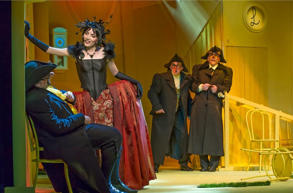 Но всё же. При всей музыкальной неординарности произведения слушать эту оперу в аудио-варианте вряд ли бы захотелось. Потому что «Четыре самодура» хорош именно как спектакль. Его привлекательность в тонкой озорной режиссуре Михаила Кислярова, в стильном условно-венецианском карнавальном оформлении Сергея и Татьяны Бархиных. И главное – в актёрских работах. В том «вахтанговском» шутовском начале, в котором как рыба в воде себя ощущают ведущие солисты Камерного театра.