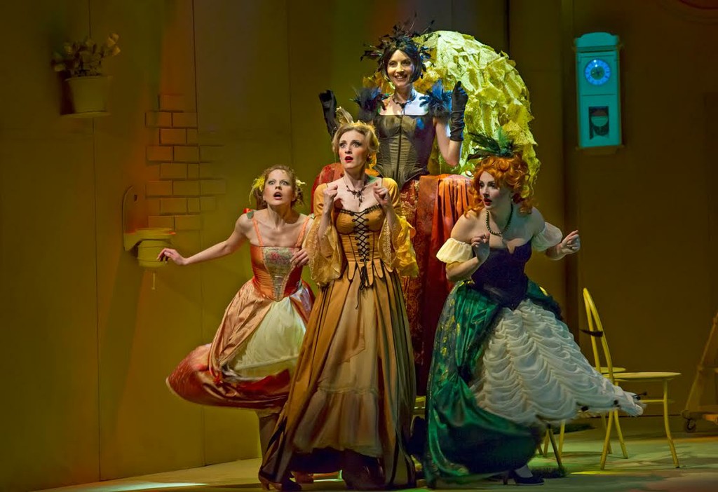 Ещё один персонаж – Синьорина Фантазия, клоунесса в маске, то в мужском трико, то в юбке. Скрипка в её руках, повернутая нижней декой, превращается в палитру художника. Мало пения, нарочито характерного, много хореографии и пластики. Ирина Пьянова запоминается, как карнавальный дух, дань комедии дель арте.