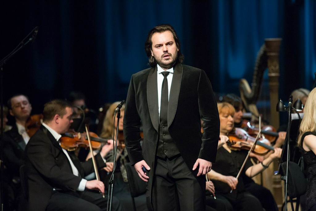 Стильность программы декларировал первый же номер – увертюра «Раймонд» Амбруаза Тома, раритет концертов оперного репертуара. Композитор посвятил значительную часть своего творчества воплощению в музыке шекспировских образов, что позволило изящно объединить в программе бриндизи Гамлета в исполнении Василия Ладюка с литературно родственными фрагментами оперы Гуно «Ромео и Джульетта» – каватины Ромео (Алексей Татаринцев) и вальса Джульетты (Анна Аглатова). В контексте концерта эти три номера, наверное, правильно оценивать как «распевочные», не отмечая некоторое количество недостатков исполнения. Пожалуй, следует отметить лишь два момента, сохранившихся в дальнейшем – неидеальное французское произношение Василия Ладюка и тенденцию Алексея Татаринцева брать верхние ноты с небольшого порожка – без откровенного подъезда, но как будто со страховкой. Шекспировскую тему продолжил мадригал «Ange adorable», в котором Алексей Татаринцев и Анна Аглатова сумели не только стилистически точно передать вокальные нюансы, но и достоверно показать характеры героев.