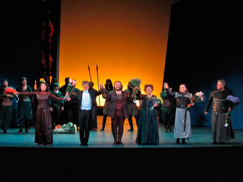 По правде говоря, «рядовых» представлений, где участвовали бы только солисты Новой Оперы, прошло едва ли не меньше, чем спектаклей с приглашенными артистами. Не получился «рядовым» и спектакль, о котором пойдет речь. Но начать рассказ стоит с церемонии, состоявшейся перед началом действия. После деликатного извинения за задержку спектакля директор театра Дмитрий Сибирцев вручил «Золотую маску» главному дирижеру театра Яну Латам-Кёнигу, который не смог своевременно получить награду. Под туш и бурные аплодисменты маэстро спустился за пульт. Приглушенные тревожные литавры начали рассказ одной из самых запутанных и, одновременно, самых знаменитых и желанных оперных историй.