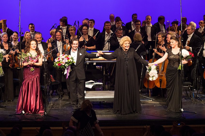 Несмотря на июньскую жару и близкий уже конец театрально-концертного сезона, столичная «Новая Опера» предложила вниманию публики очередной концерт из своей новой серии «Звезды мировой оперы». На сей раз его основополагающая идея заключалась в том, что на одну сцену с Еленой Образцовой, прославленной примадонной мировой оперы XX века, вышли наши отечественные певцы, которые в разные годы становились победителями международных конкурсов, учрежденных ею в Санкт-Петербурге. Речь идет о конкурсе молодых оперных певцов, конкурсе теноров памяти Лучано Паваротти и конкурсе меццо-сопрано памяти Федоры Барбьери. Участниками вечера, в основном, были солисты «Новой Оперы», а сам он явился одним из впечатляющих мероприятий Фонда Елены Образцовой, приуроченных к ее предстоящему юбилею.
