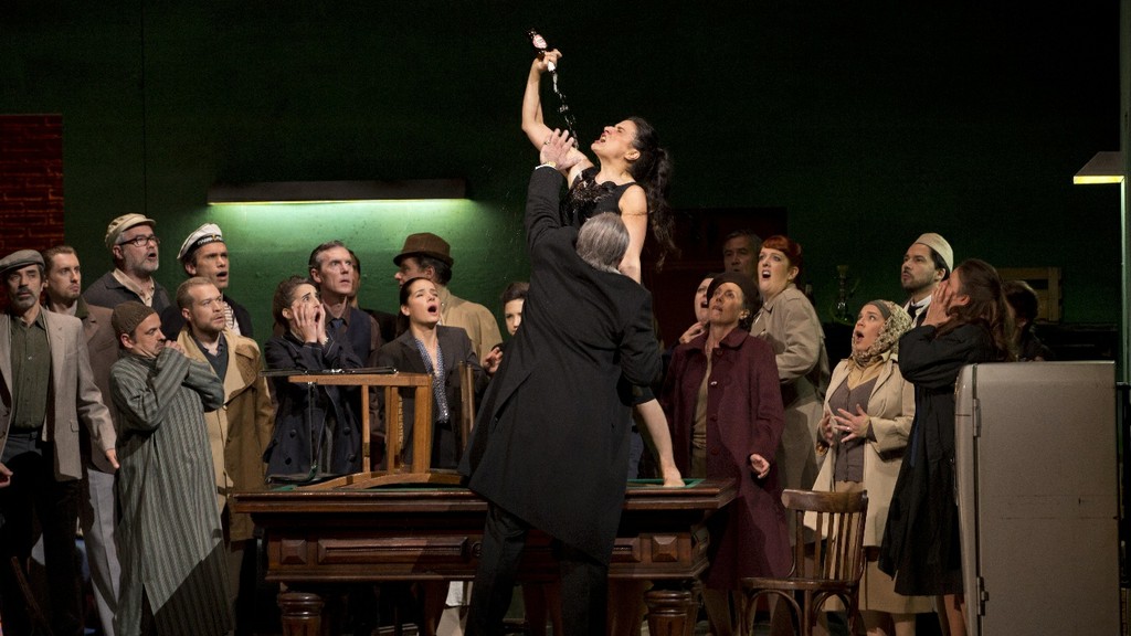 Постановка Моше Лейзера и Патриса Корье в элегантно минималистичном интерьерном обрамлении декораций Кристиана Фенуиллата поначалу напоминает модернизированные прочтения классики Кристофа Лоя. Но по трезвом размышлении понимаешь, что никакого иного оформления, включая лаконичные строгие костюмы Агостина Кавальки, для экспрессивной актуализации, предложенной исполнительницей главной партии, подобрать просто невозможно. Бартоли не просто взрывает наше представление о героине Шекспира (это представление серьёзно скорректировано уже в либретто Франческо Берио, де факто не оставившего от оригинального сюжета камня на камне!), она заставляет нас переживать каждый жест, каждую реплику, каждую фиоритуру, наполняемую немыслимым психологическим напряжением! Чтобы ощутить это, достаточно представить себе финал третьего акта, во время которого Дездемона, проклятая отцом за самовольный выбор мужа, в полубредовом экстатическом состоянии забирается на стол и обливает себя пивом…