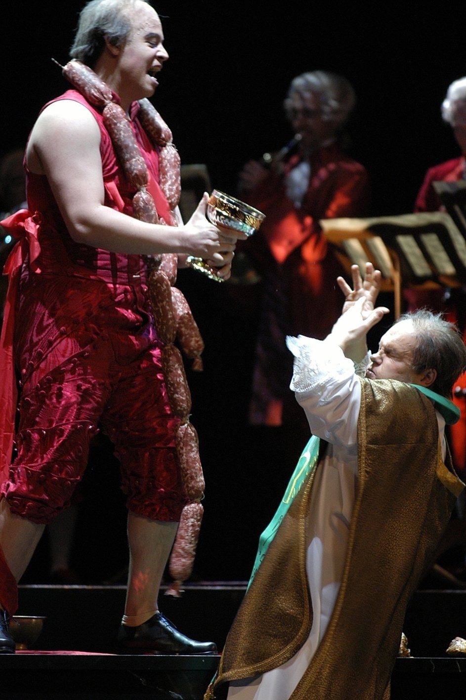 В этих рамках совершенно блестяще выступил Хейко Тризингер, исполнивший партию Дон Жуана: незначительные расхождения с оркестром и чисто субъективная вычурность фразировки, обусловленная, как я понимаю, режиссерской интерпретацией, лишь добавляли масла в огонь, в котором певец испепелял устоявшийся образ сексуального титана. Дон Жуан у Тризингера — сексуальный двойник Фальстафа: комичность его озабоченности и ненасытной всеядности не оставляет камня на камне от романтической ауры неутомимого любовника.