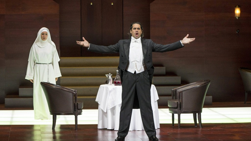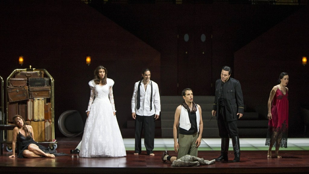 Предыдущая версия моцартовского «Дон Жуана», поставленная Клаусом Гутом в Зальцбурге в 2011 году, оказалась, мягко говоря, не самой лучшей работой режиссёра, блестяще препарировавшего и «Свадьбу Фигаро», и, в особенности, «Так поступают все». С «Дон Жуаном» у Гута что-то не сложилось капитально ещё в 2008-м, не в последнюю очередь благодаря участию в постановке Эрвина Шротта, который настолько выпятил своего Лепорелло на первый план, что остальные герои практически растворились в безудержности южно-американской харизмы певца. На фоне этой инсценировки предыдущая работа режиссёра Мартина Кушея, несмотря на всю свою «галантерейную» ангажированность (центральной заставкой к спектаклю служил рекламный плакат одного из производителей нижнего белья), воспринималась едва ли не откровением. И вот настал черёд нового переосмысления.