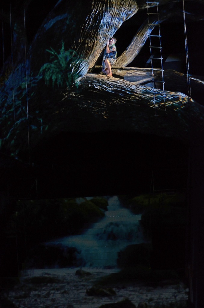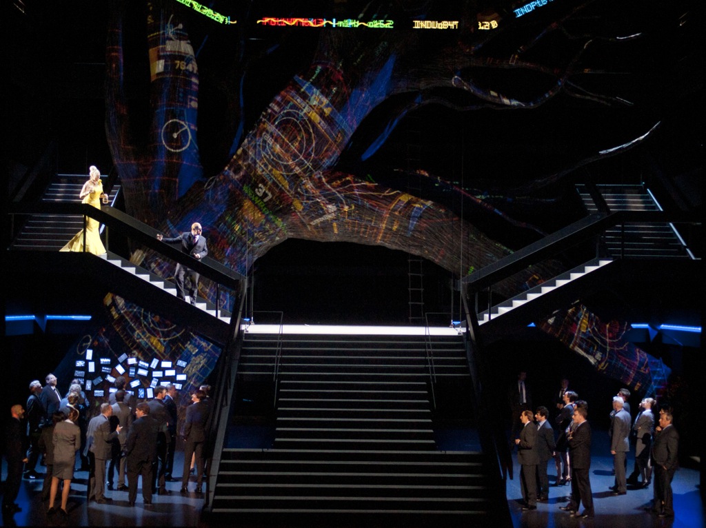 С помощью удивительно зрелищного видеопроекционного дизайна Франка Алеу, аллегорически отражающего все стадии жизни, смерти и возрождения на новом витке бытия, это дерево грустит и страдает, плачет и смеется. Наиболее эффектной предстает идея постепенного (от корней к ветвям) поглощения этого дерева пламенем «всеочищающего огня», в котором оно вовсе не гибнет, а становится Вечностью. Таким образом, грань между романтикой мифа, более реалистично преломленной в сюжете оперы, и конструктивизмом постановочной реальности к концу спектакля полностью стирается. А это значит, что непривычно колючая и жесткая, на первый взгляд, постановка свою главную миссию выполнила, ибо средствами современного музыкального театра с элегантной изысканностью, хотя и проступившей не сразу, всё же смогла рассказать именно ту историю, которая и была заложена в либретто и музыке.