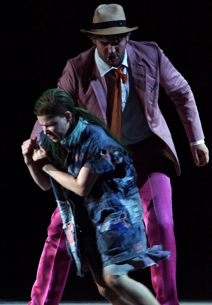 Исполнителей партий Пенея и Геи – шотландца Иэна Пэтерсона и немку Биргит Реммерт – назову лишь для протокола. Я, что называется, просто принял их к сведению: на сцене они были, и я их видел. Басовая партия Пенея явно эпизодична, а альтовая партия Геи, хотя и гораздо более «осязаема», музыкальностью ее интерпретации, увы, совсем не задела. Зато эту постановку украсили два первоклассных тенора-соперника: в партии Левкиппа был датчанин Петер Лодал, в партии Аполлона – американец Эрик Кутлер, при чем, их партии для обоих стали ролевыми дебютами. И, надо признать, весьма необычный любовный треугольник этой оперы с двумя теноровыми вершинами на сей раз держался именно на них, а не на своей главной женской вершине.
