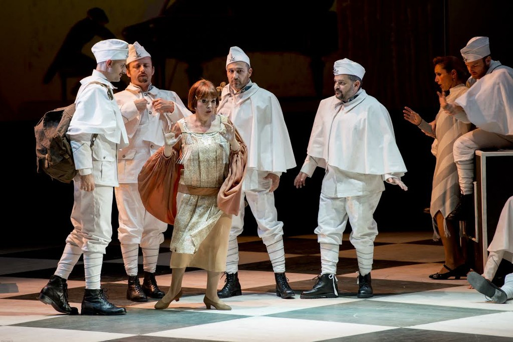 Режиссер Луиджи Барилоне превратил владелицу скромного шале в Швейцарии в хозяйку шикарного альпийского отеля, клиенты которого отнюдь не страдают отсутствием денег, а сценограф Лука Дальбоско перенес действие в двадцатые годы минувшего столетия. Его задники (мебели на сцене было минимальное количество, отчего она казалась немного голой) радовали глаз изяществом.