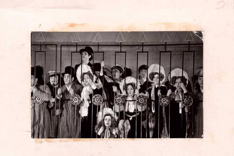 В антракте поклонник искусств выходит в фойе, следует к стендам со старыми фотографиями из спектаклей, находит уголок, посвященный «Носу», чтобы глянуть еще раз на узор решетки, и обнаруживает… треугольники. Там другое висит фото, не столь отчетливое, я выбрал потом с более проявленными треугольниками, но смысл именно в них: