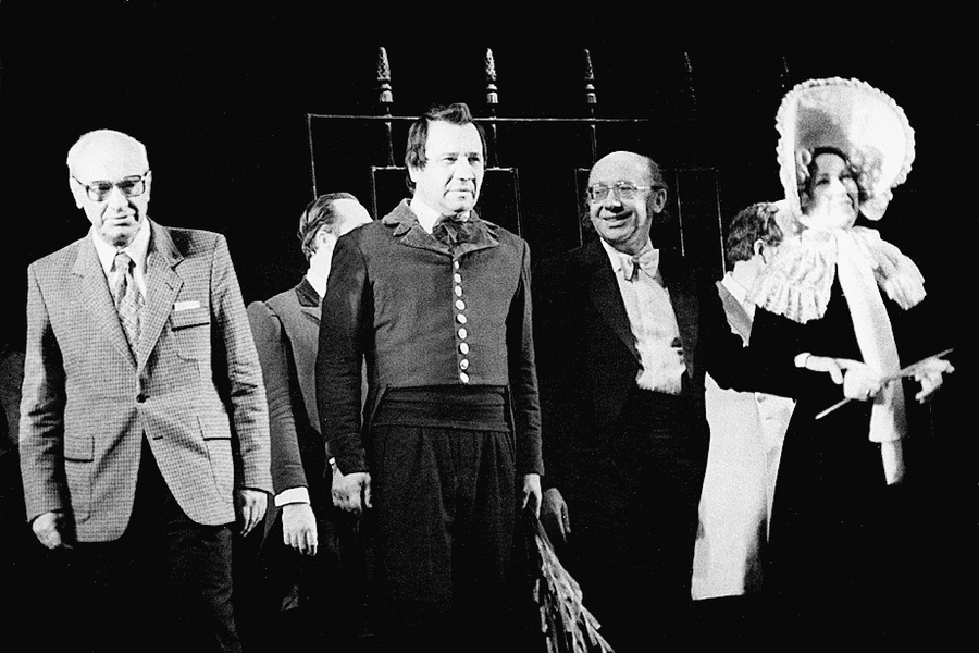 — Для меня, конечно, это был потрясающе интересный период жизни. Я был ассистентом Бориса Александровича на учебных спектаклях в ГИТИСе, потом, когда возник Камерный, на спектакле «Не только любовь» Родиона Константиновича Щедрина, и он меня позвал сопостановщиком «Носа». Целый месяц я мог плотно общаться с Дмитрием Дмитриевичем Шостаковичем. Он приезжал на репетиции «Носа», а я сопровождал его в машине в театр и из театра, и, конечно, в дороге мы разговаривали. Иной раз он мне говорил мне, что вот, Николай Иванович, у Бориса Александровича появилась слишком завиральная идея, вы уж скажите ему… Я говорил, и Борис Александрович старался исправлять, и Дмитрий Дмитриевич видел, что исправлено, и ловил взгляд Бориса Александровича, и делал ему легкий поклон…