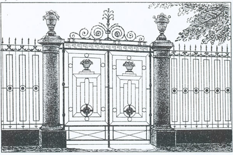 У Юрия Матвеевича (он же Георг Фридрих) Фельтена узор решетки (основной решетки, не ворот) вот такой: