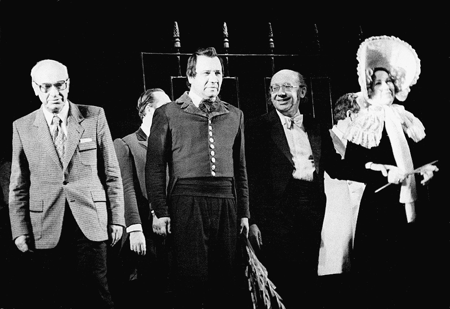 — Какую-то сцену я ставлю, Борис Александрович ее редактирует, какую-то он ставит, я ее фиксирую… Потом Покровский перекинулся на новые работы, а ее вел спектакль. Вторым исполнителем Ковалева был Хрулев – я его вводил в спектакль… Очень сочный актер Хрулев. Новый актер – это обязательно переделки под его индивидуальность. Долгие годы я вел спектакль. Но я ушел из театра, когда началась перестройка. Тогда возникало много новых театров, и я организовал, с помощью Тихона Николаевича Хренникова, музыкальный театр «Композитор» при Союзе композиторов. Мы там ставили только советские оперы, и этой идеей конечно мы были связаны с Покровским. Он, кстати, дал мне добро на новое дело. А через пять лет Советский Союз распался и театр прекратил существовать. В Камерном же, когда я ушел, Борис Александрович вновь прикоснулся к «Носу», и как раз пришел новый состав исполнителей, появились у него новые идеи, он фактически переставил спектакль, и мое имя естественным путем ушло из афиши…