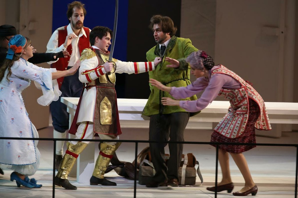 В общем, сделано всё… и ещё немножко, чтобы публика не заскучала. Самое интересное, что при таком обилии трюков, гэгов и оригинальных придумок, при активном включении в действие партера, ярусов и даже фойе, при том, что речитативы частично поются, а частично проговариваются со смешным вкраплением русских слов, спектакль время от времени провисает и становится скучным. Оказывается, что молодая труппа по большому счёту к такой эстетике не готова. Ибо трюк не заменяет актёрской и вокальной энергетики, внутренней пружинистости и особой, характерной именно для «божественного маэстро» темпоритмики. Это – высокий класс, но без него Россини никогда не станет шампанским от Вдовы Клико, как бы красиво ни была разрисована бутылка.